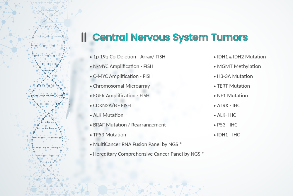 در آزمایشگاه پاتولوژی و ژنتیک کریمینژاد - نجمآبادی، پنل اختصاصی تومورهای مغزی (CNS Tumor Panel) با پوشش کامل ژنهای کلیدی و بر اساس جدیدترین طبقهبندی WHO 2021 و گایدلاین NCCN 2025 انجام میشود. این تستها در کنار FISH، PCR و Array CGH، مسیر تشخیص دقیق و درمان هدفمند بیماران را فراهم میکنند. لیست این آزمایشها را میتوانید در ادامه مشاهده نمایید.