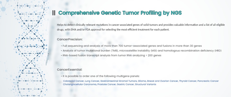 - تحلیل ژنتیکی کامل تومور با NGS امکان شناسایی بیش از ۷۰۰ ژن، فیوژنها، MSI، TMB و نواقص تعمیر DNA را فراهم میکند تا پلن درمانی کاملاً شخصیسازی شود.