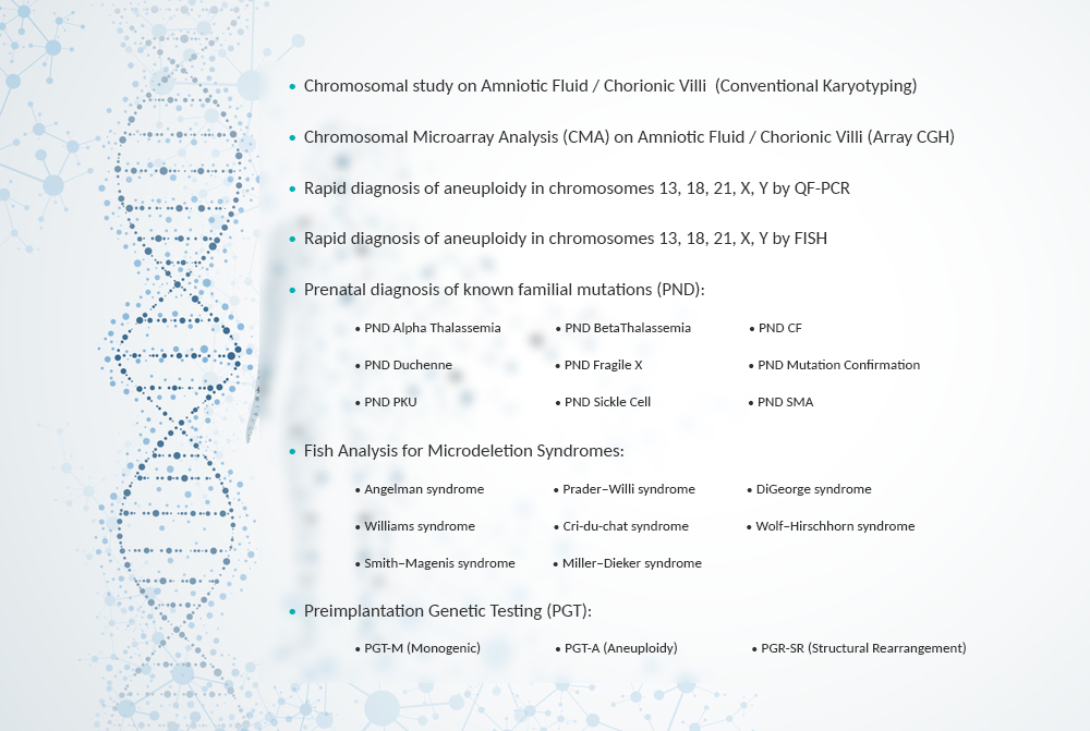 در آزمایشگاه پاتولوژی و ژنتیک کریمینژاد – نجمآبادی خدمات زیر در بخش تشخیص پیش از تولد ارائه میشود: